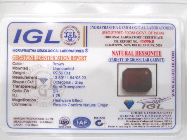 9.56 Carat 10.52 Ratti IGL Certified Natural Ceylon (Sri Lanka) Octagonal shape Hessonite (Gomed) Gemstone