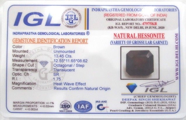 Title: 13.45 Carat (15 Ratti) Natural Ceylon Octagonal Hessonite (Gomed) Gemstone