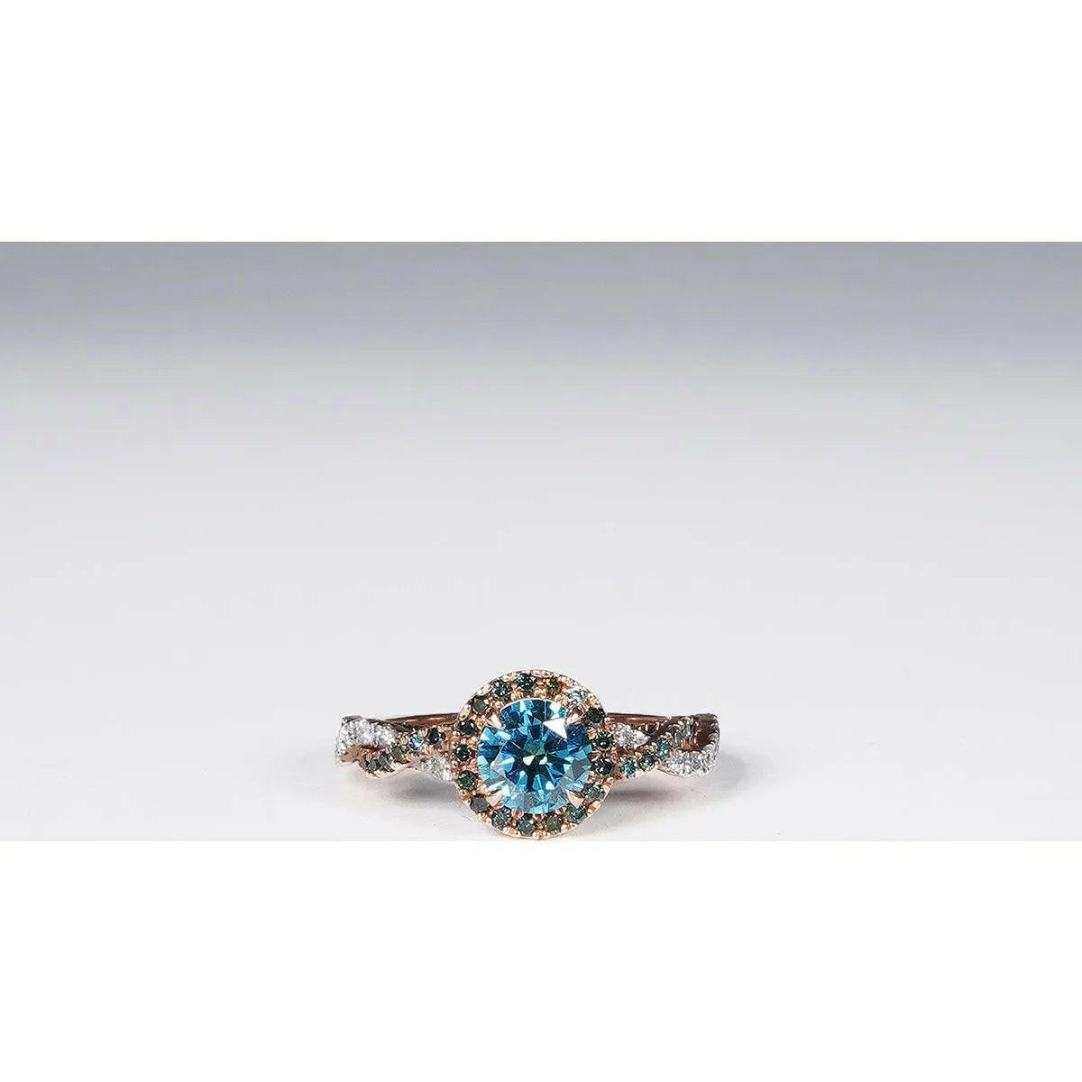 1.79 Carat Vivid Blue Round Cut Lab Grown Diamond Ring in 14K Rose Gold