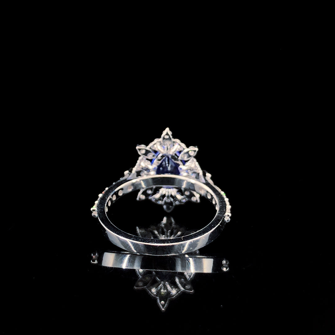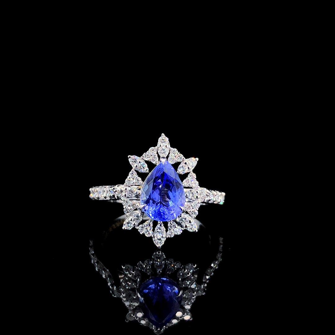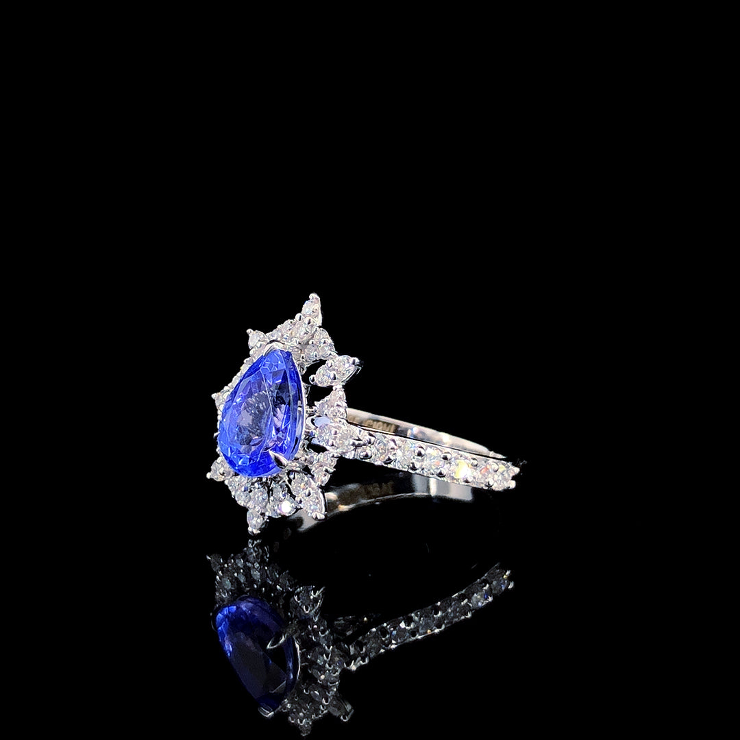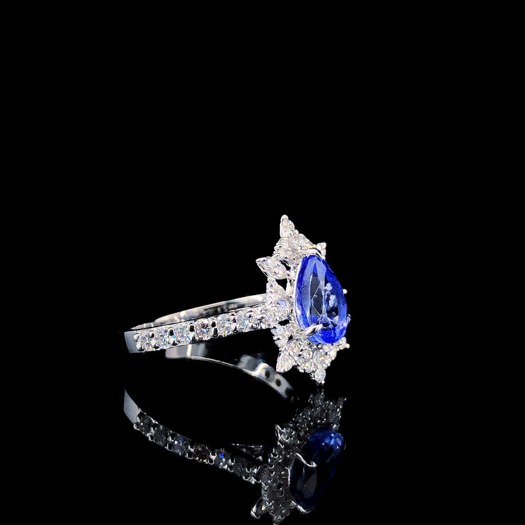 1.40ct Tanzanite Stone And 0.57ct Lab-Grown Diamond Pear Ring In 14k White Gold