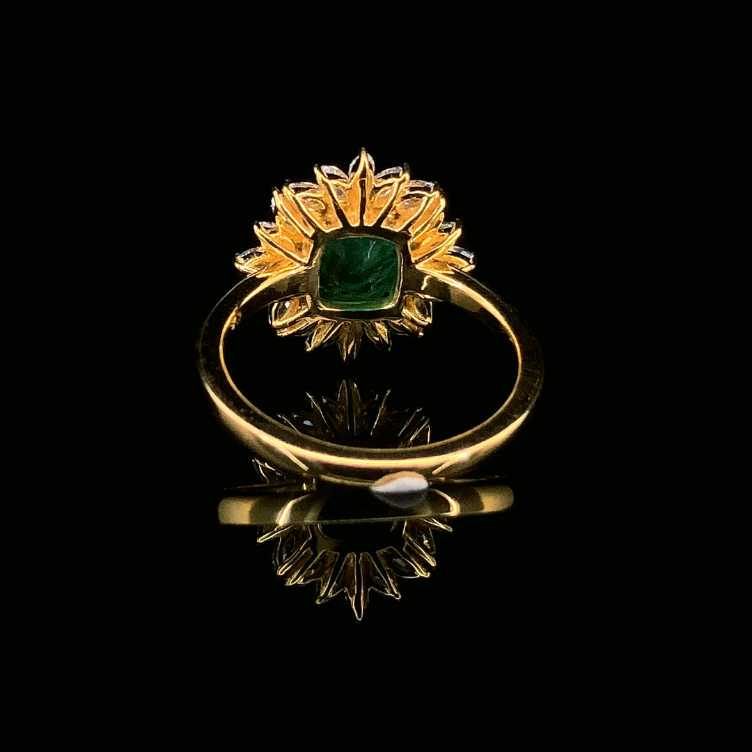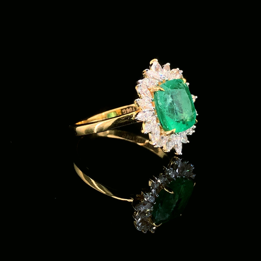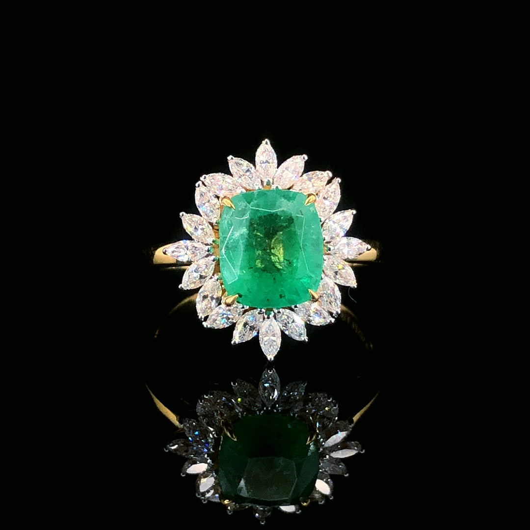 2.03ct Natural Emerald Stone With 0.63ct Lab-Grown Diamond Ring In 14k Yellow Gold