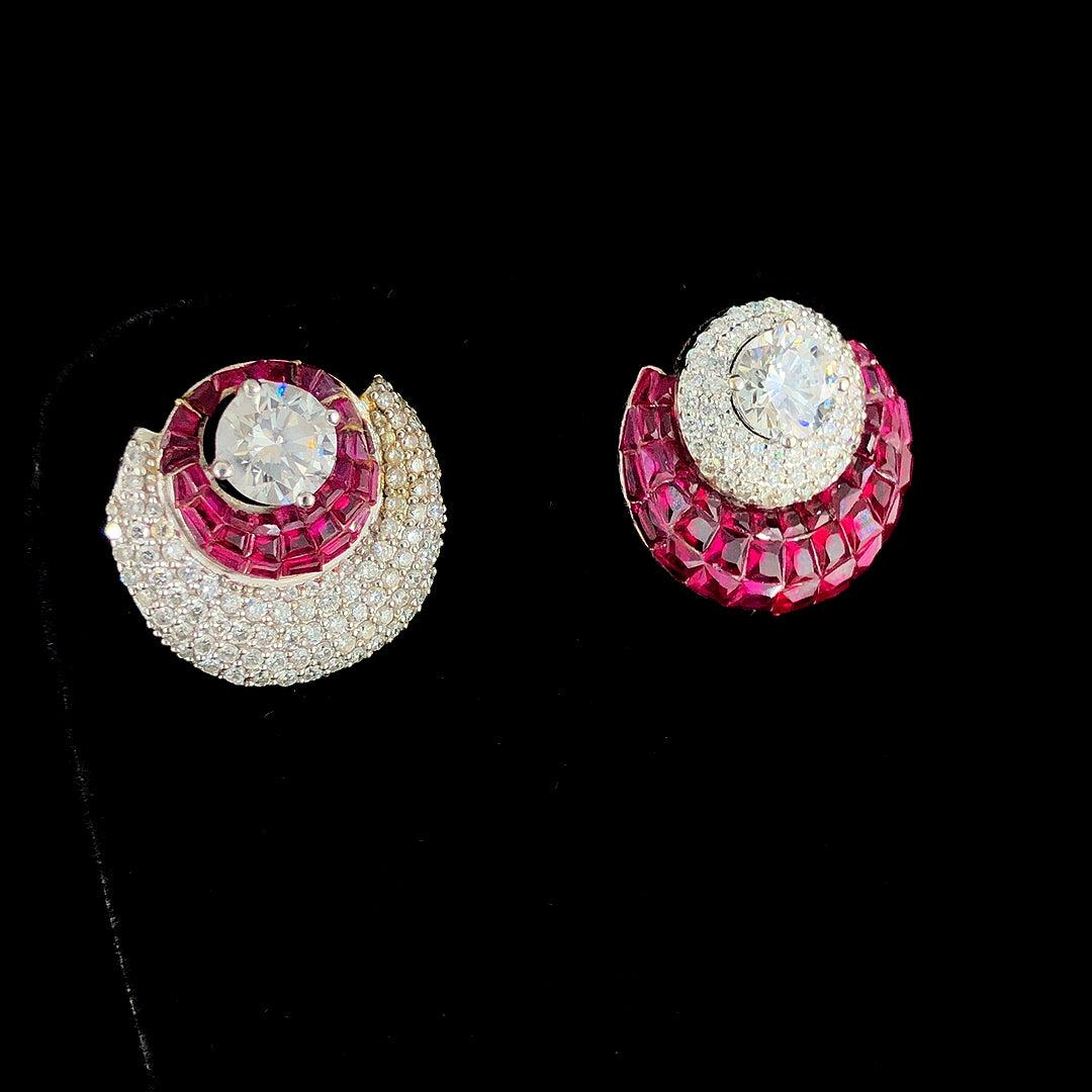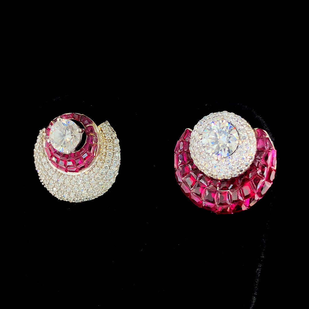 3.35ct Synthetic Stone With 1.895ct Lab-grown Diamond Studs Earring In 18k White Gold