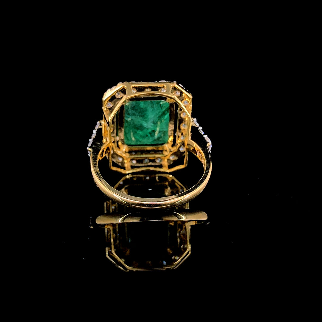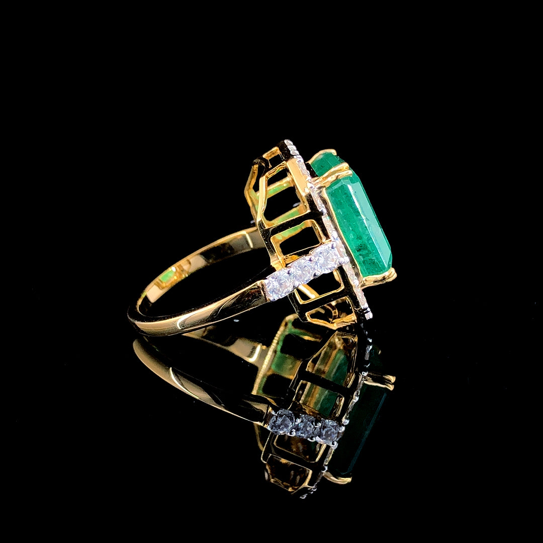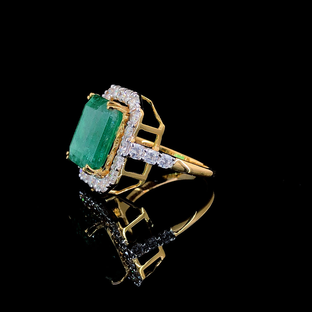 5.55ct Natural Emerald Stone With 1.61ct Lab-Grown Diamond Ring In 18k Yellow Gold