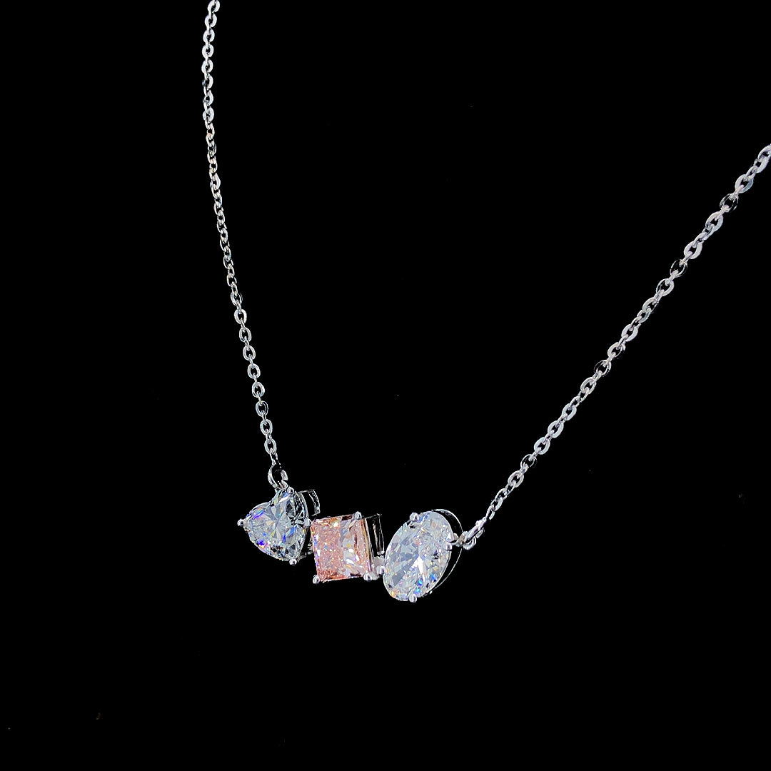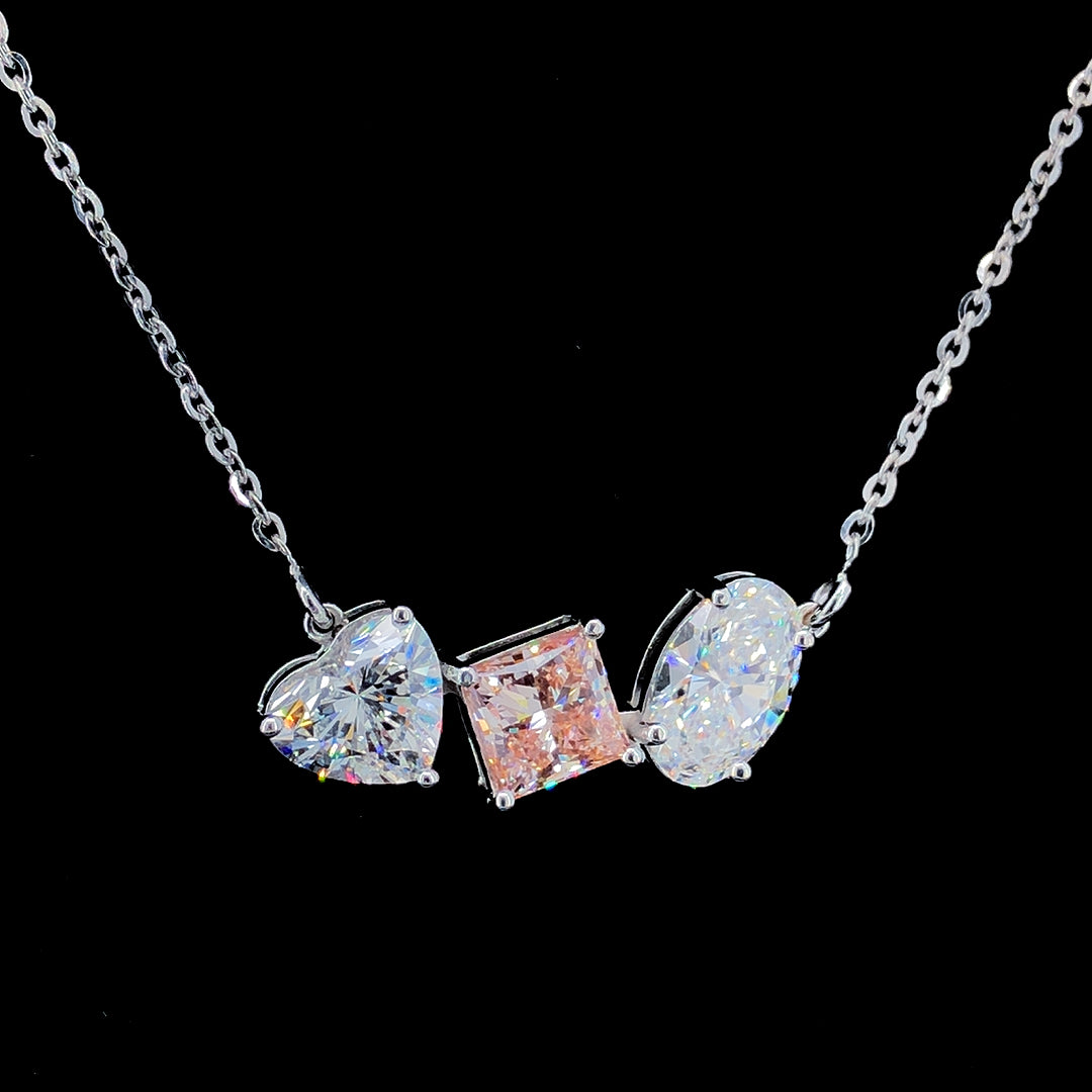 6.1ct Lab-Grown Diamond Heart, Oval & Pink Princess shape pendant in 14k White Gold