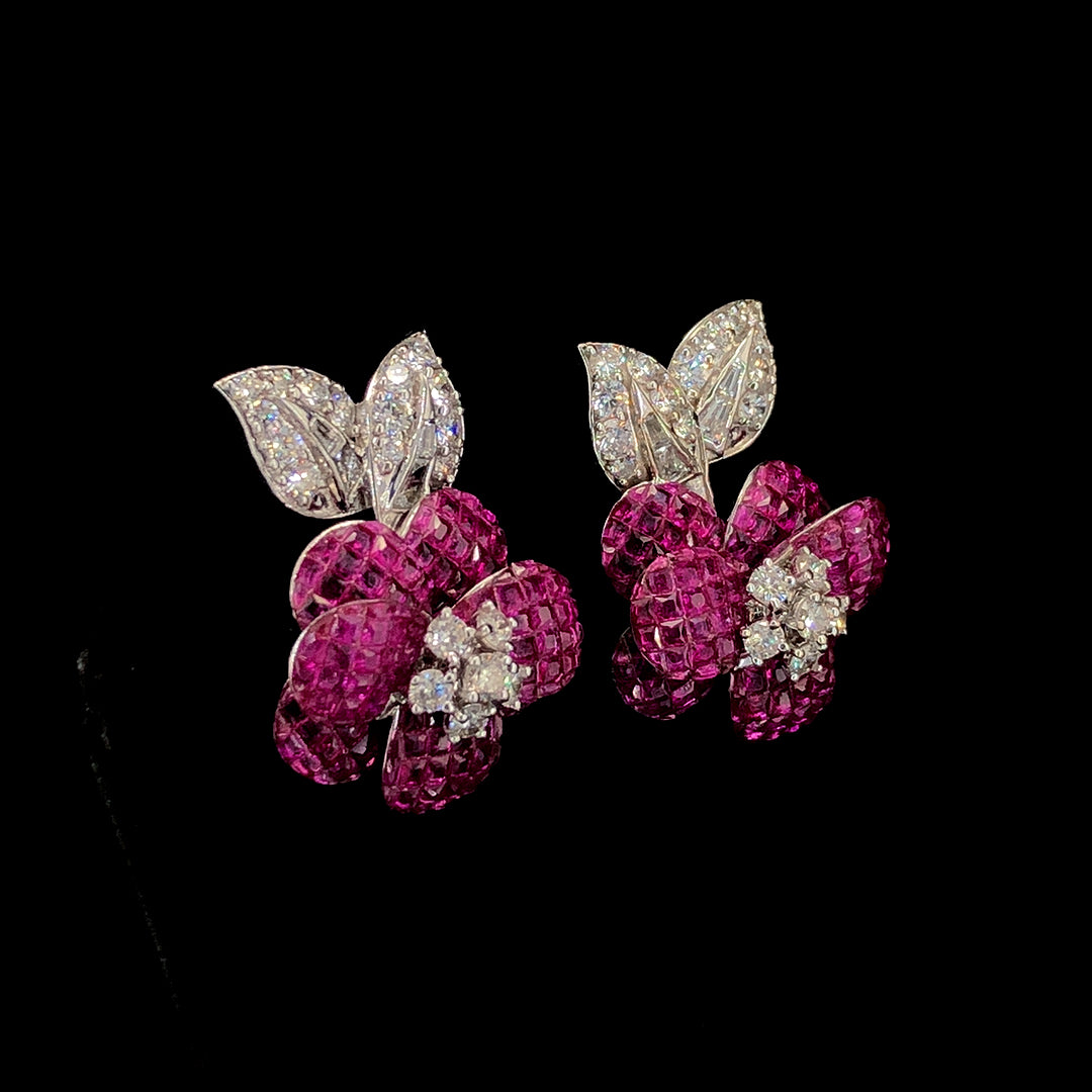 8.05ct Synthetic Stone With 1.93ct Lab-grown Diamond Studs Earring In 18k White Gold