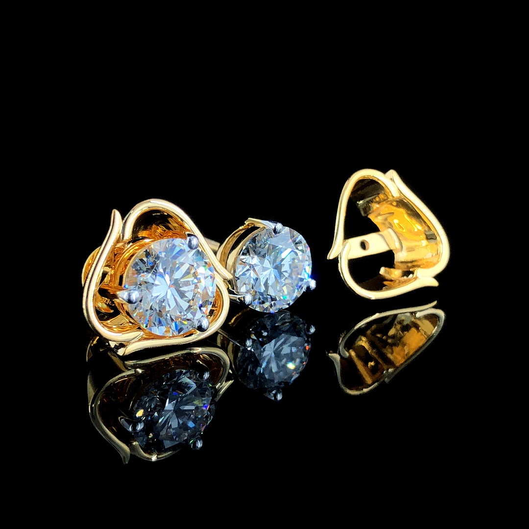 Classic 18K Yellow Gold 4.06ct Lab Grown Diamond Round Stud Earrings