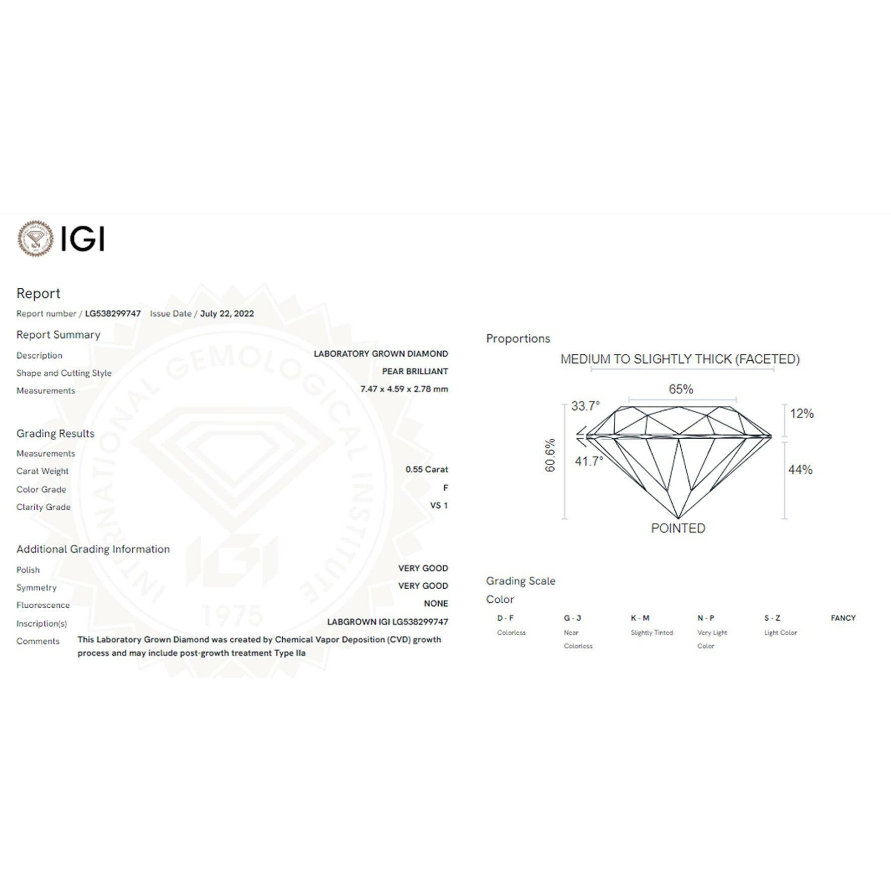 0.55 carat Lab Grown Diamonds in Pear Cut