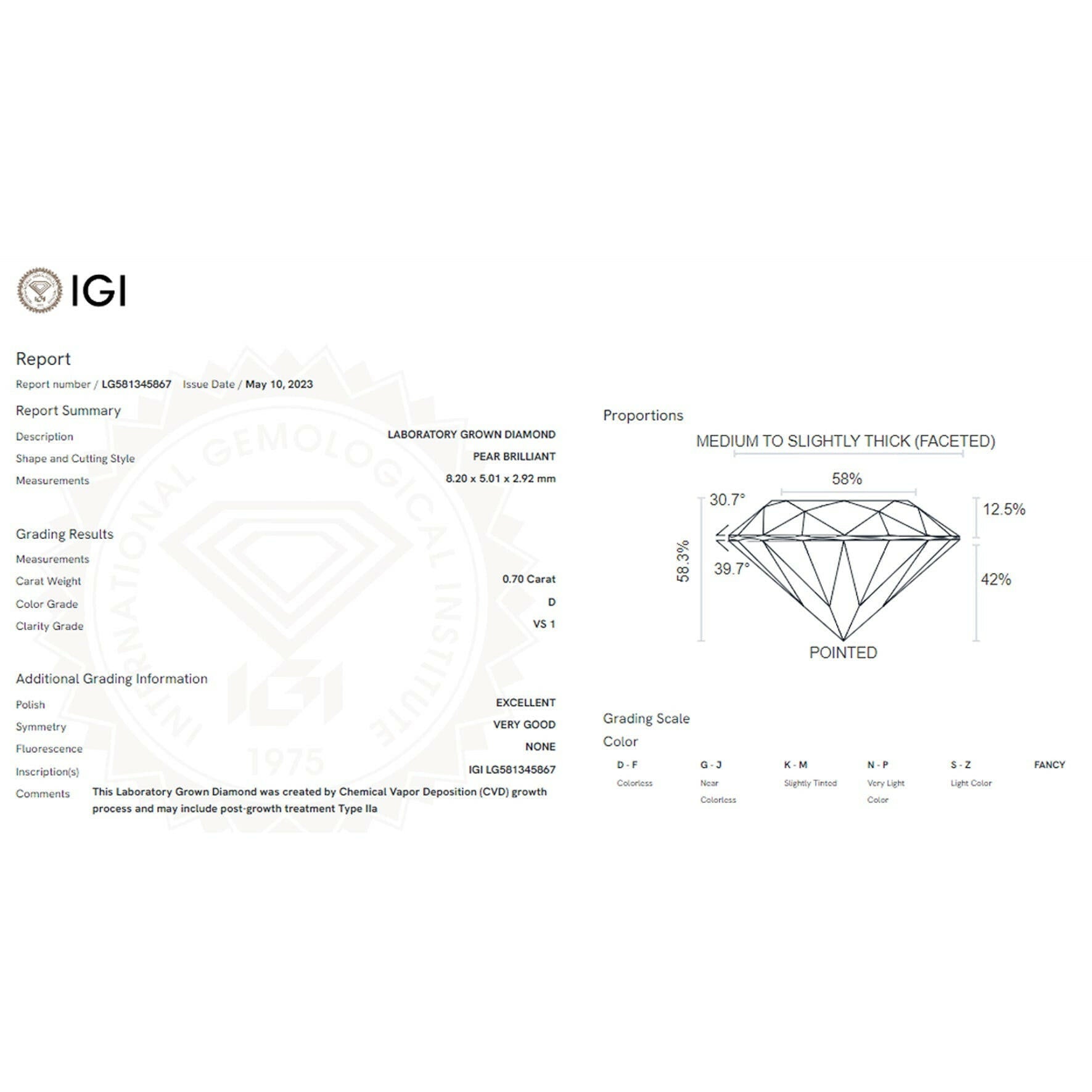 Pear Shaped 0.70 carat Lab Grown Diamonds Perfect for Jewelry