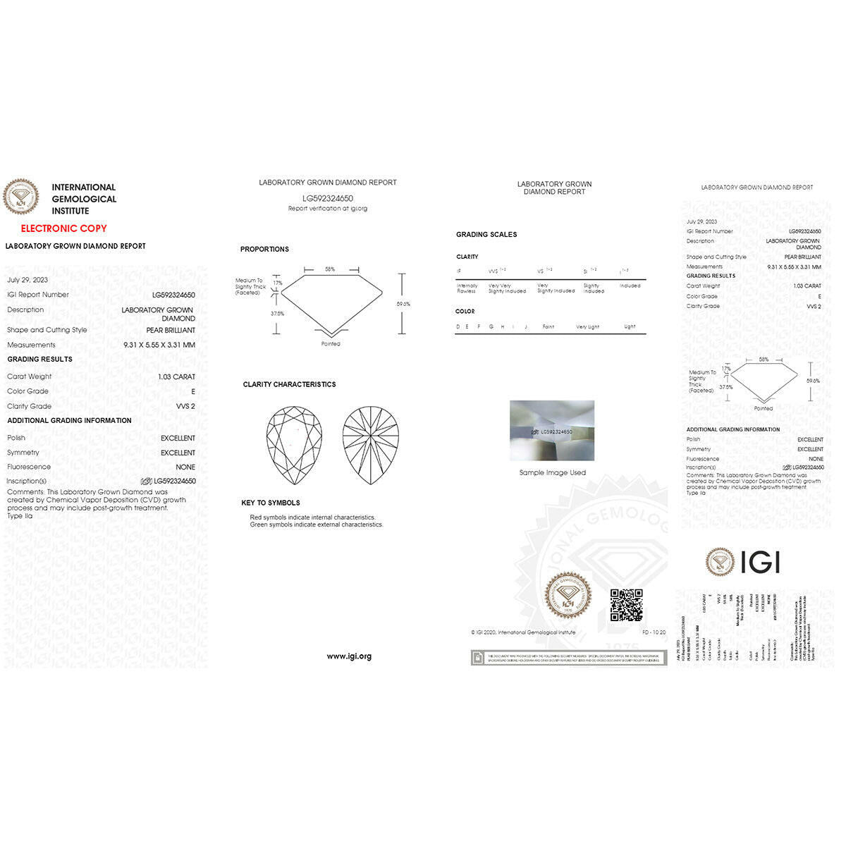 Adorn Yourself with Eco-Friendly 1.03 carat Pear-Cut Lab Diamond