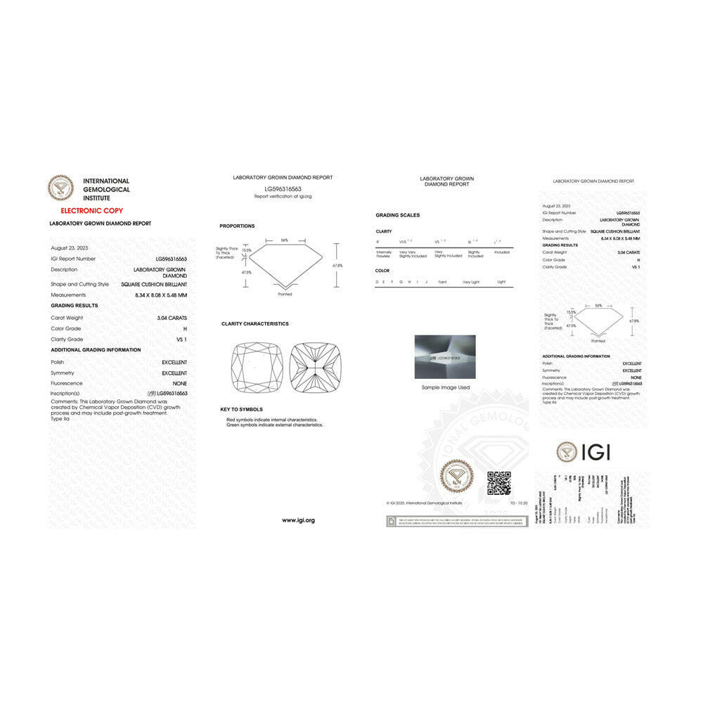 3.04 Carat Cushion Shape Lab Grown Diamond