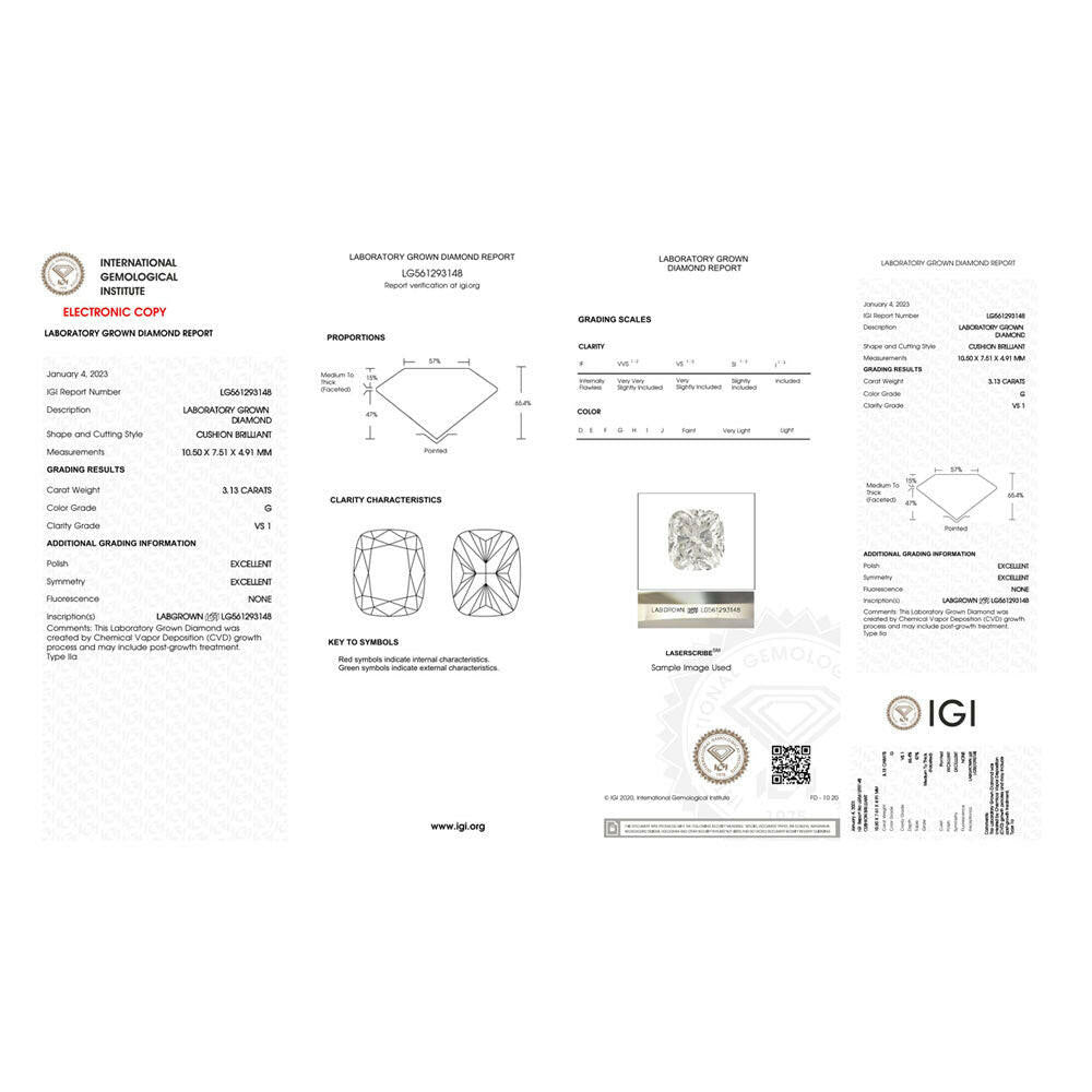 3.13 Carat Cushion Shape Lab-grown Diamond