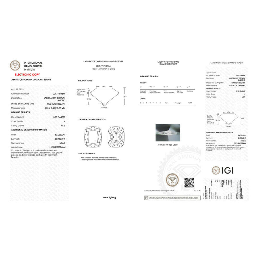 3.15 Carat Cushion Shape Lab-grown Diamond