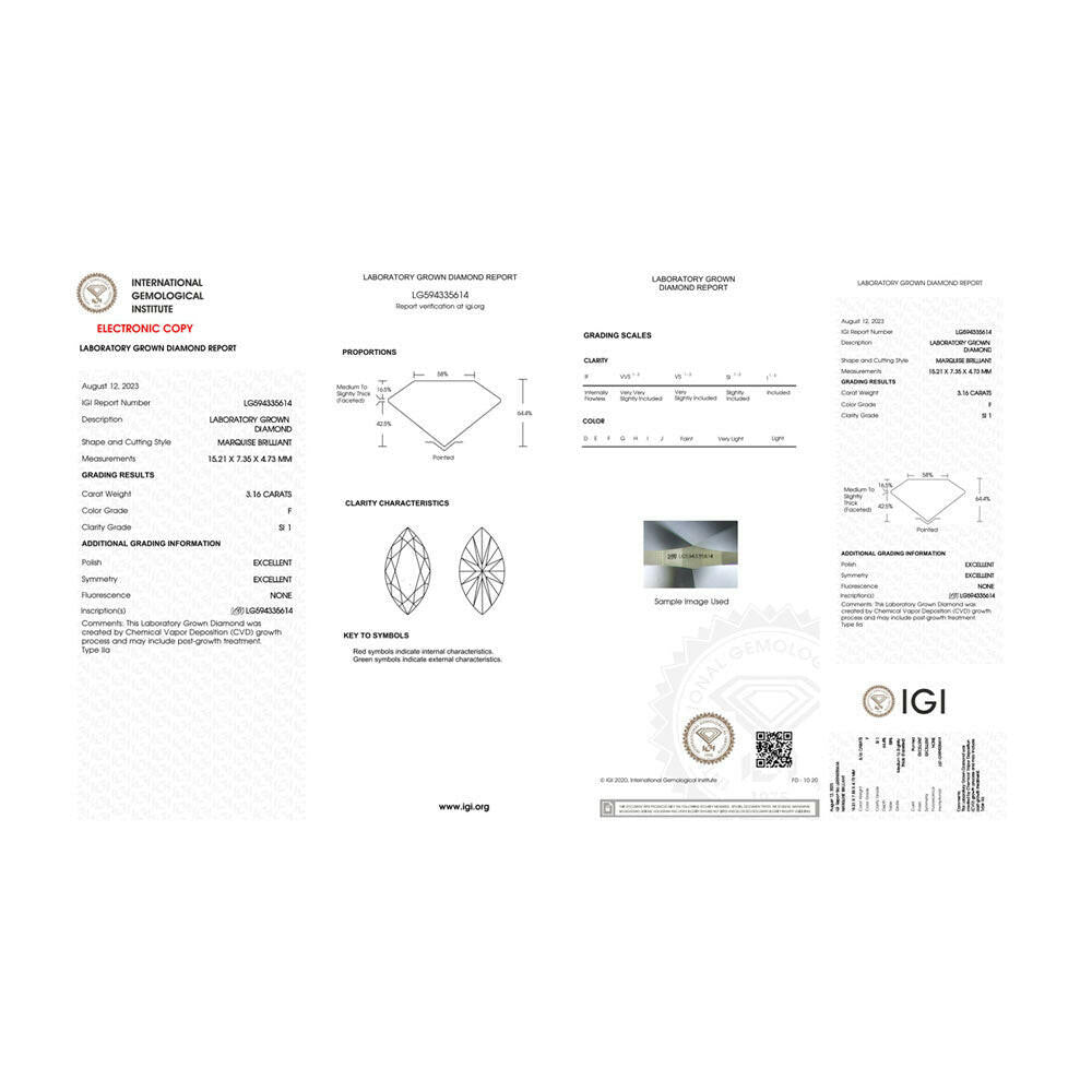 3.16 carat Marquise Shape Lab Grown CVD Diamond