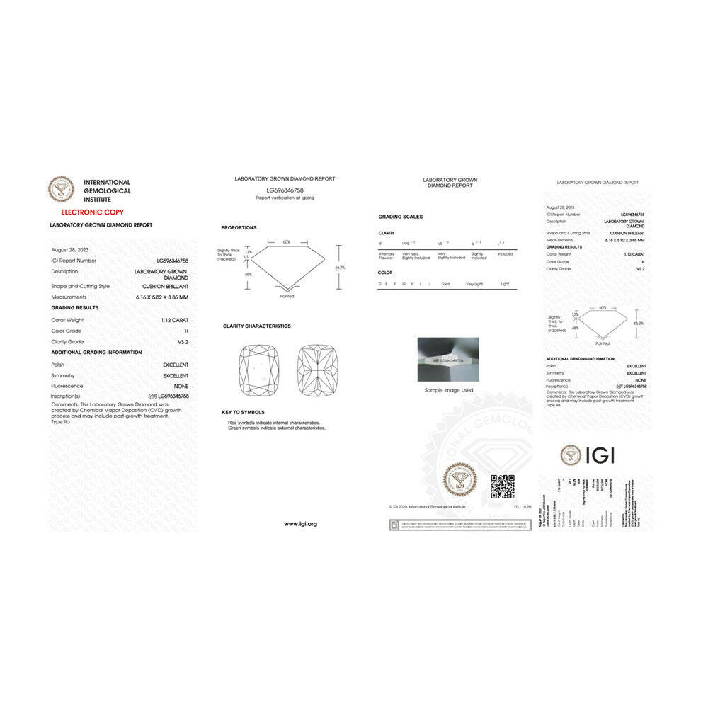 Cushion Shape 1.12ct Lab Grown Diamonds for the Jewelry