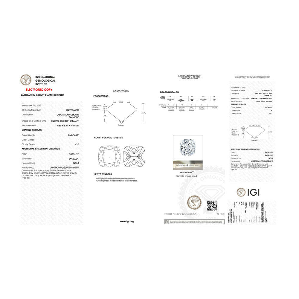 Cushion Cut 1.68ct Lab Grown Diamond