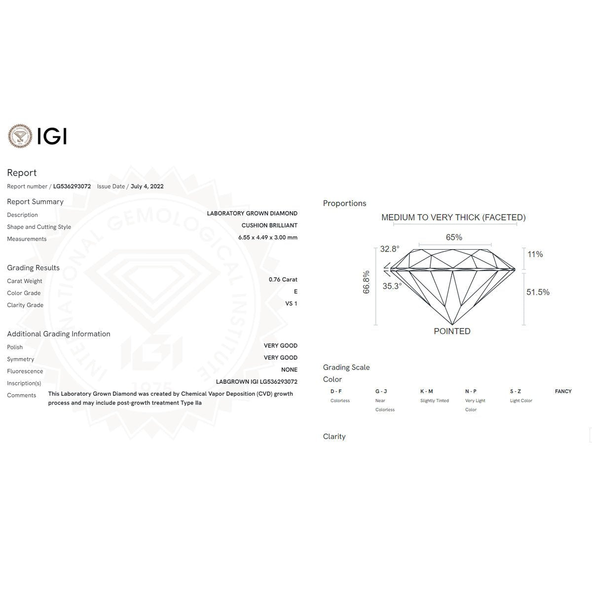 The Captivating Charm of 0.76ct Cushion Cut Lab Grown Diamond