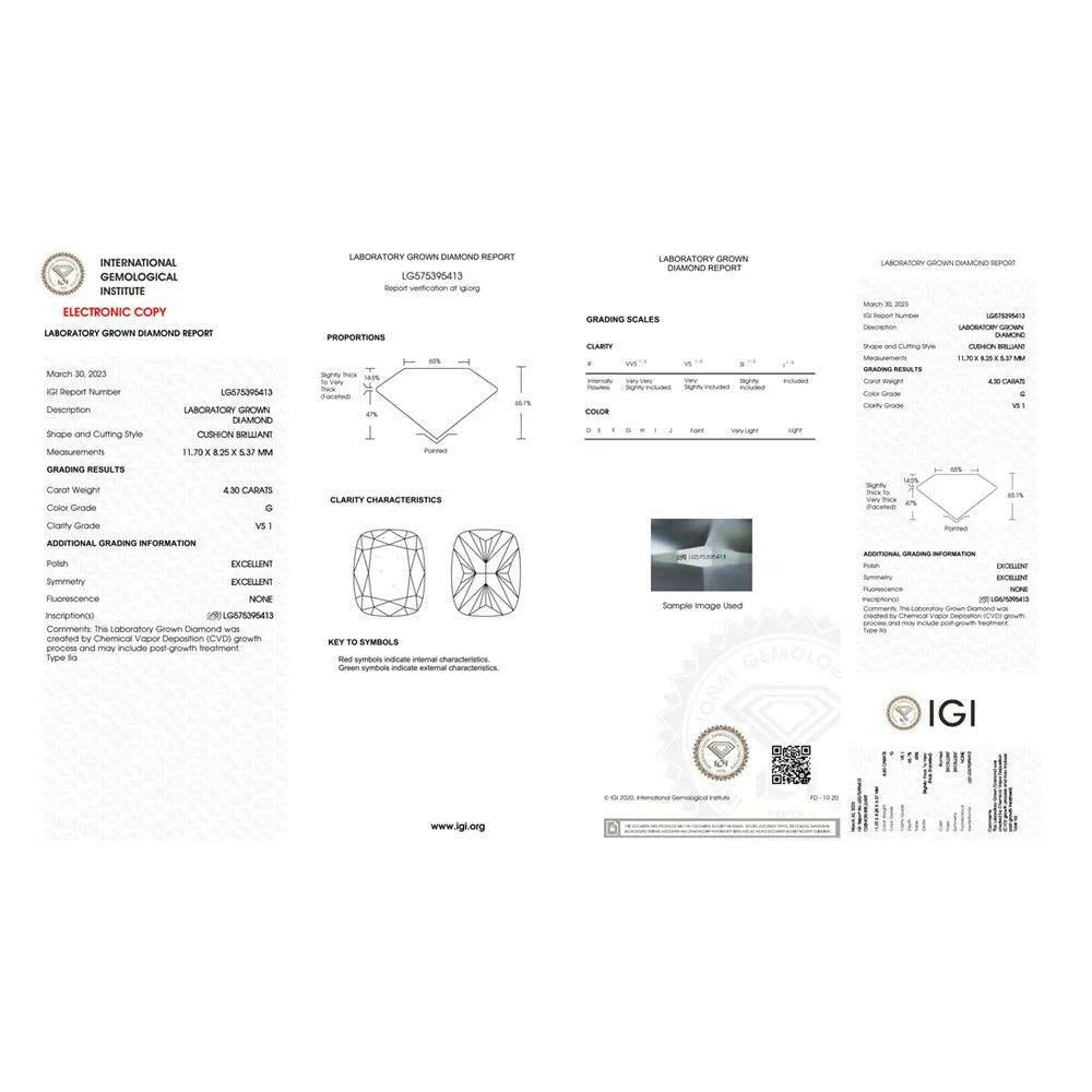 Luxury at an Affordable Price 4.30ct Cushion Cut Lab-grown Diamond