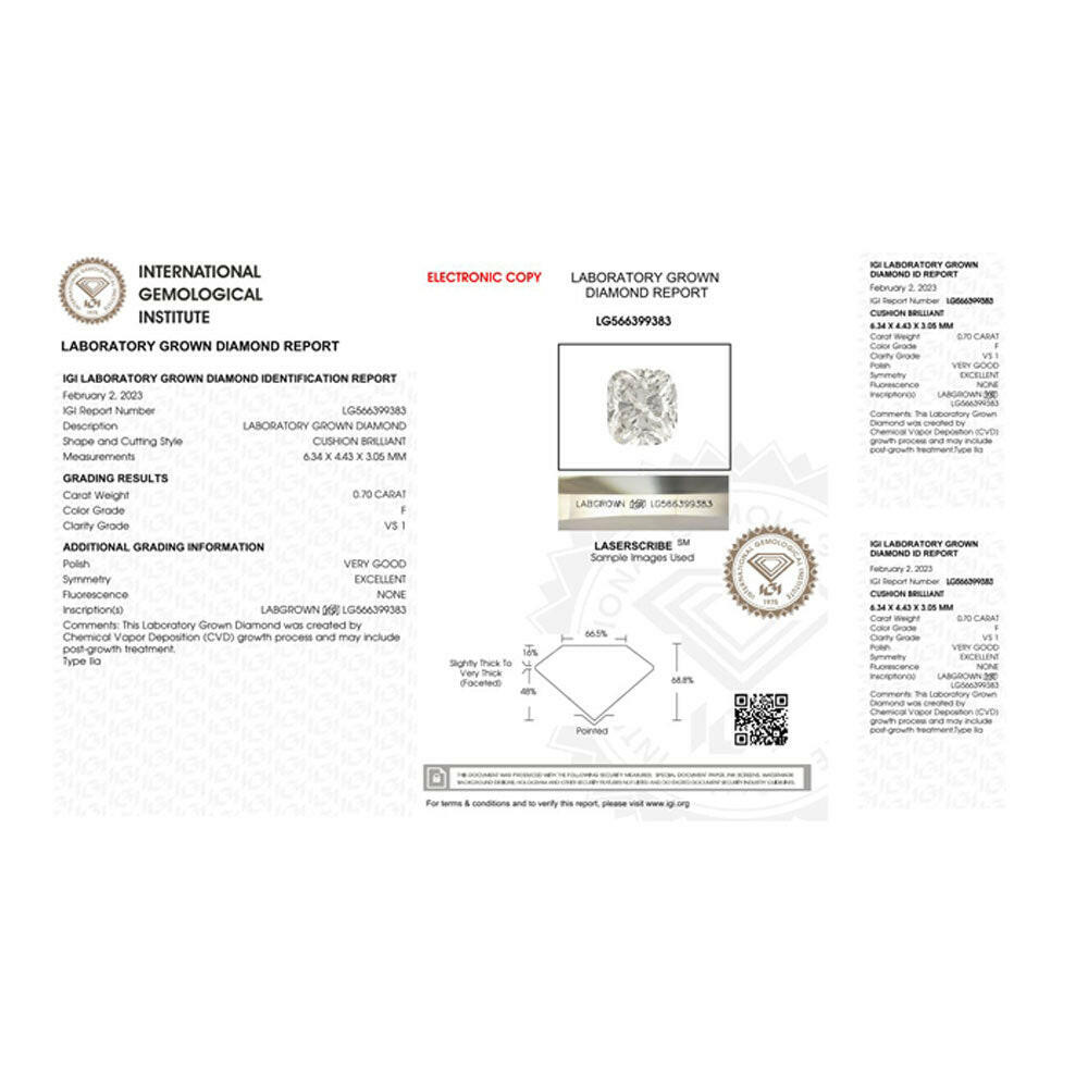 Cushion Shape 0.70 Carat Lab Created Diamond