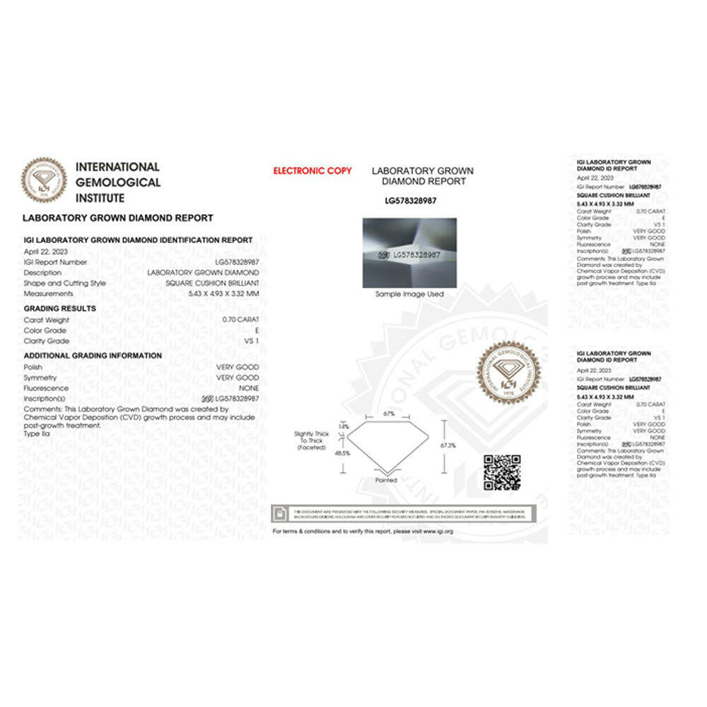 Cushion Shape 0.70ct Lab Grown Diamonds for Jewelry