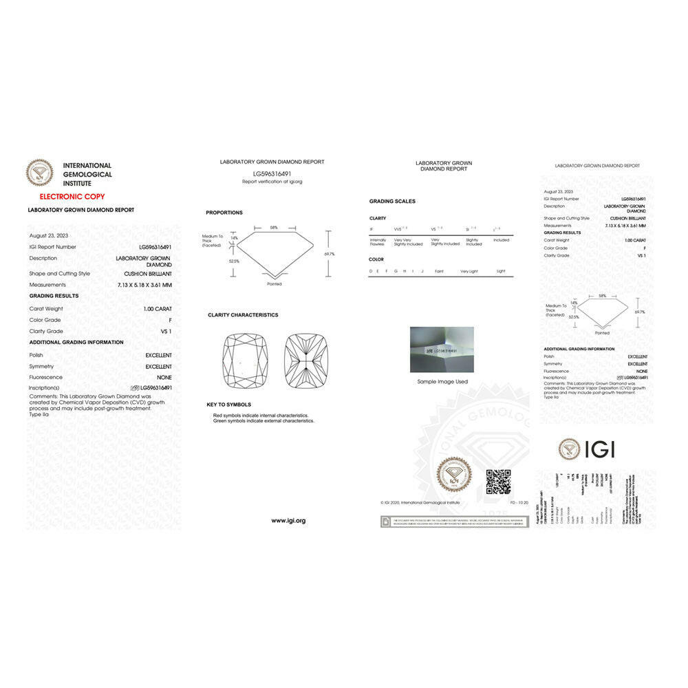 Cushion Shape 1.00 Carat Lab Created Diamond