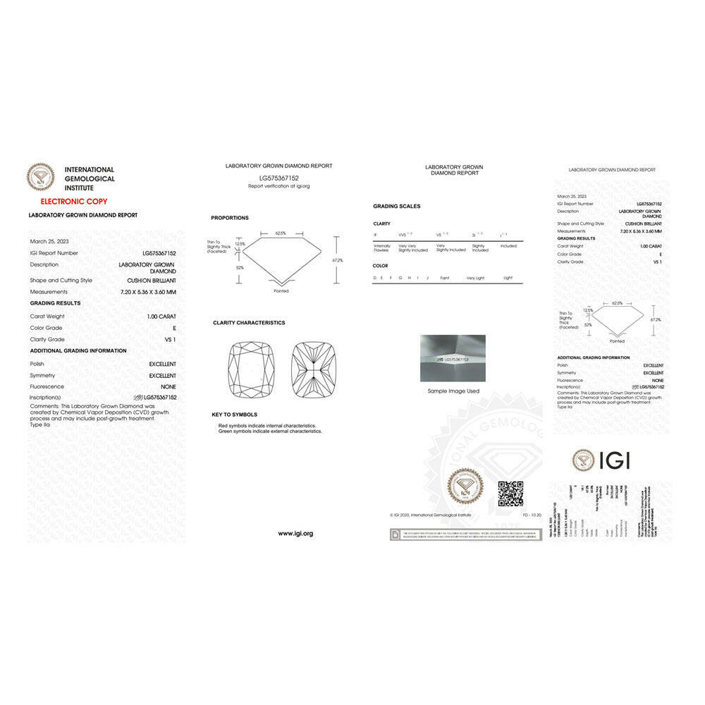 Cushion Shape 1.00 Carat Lab Created Diamond