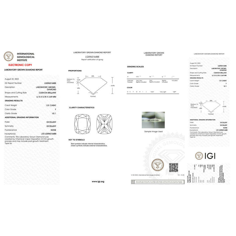Cushion Shape 1.01ct Lab Grown Diamonds for Jewelry