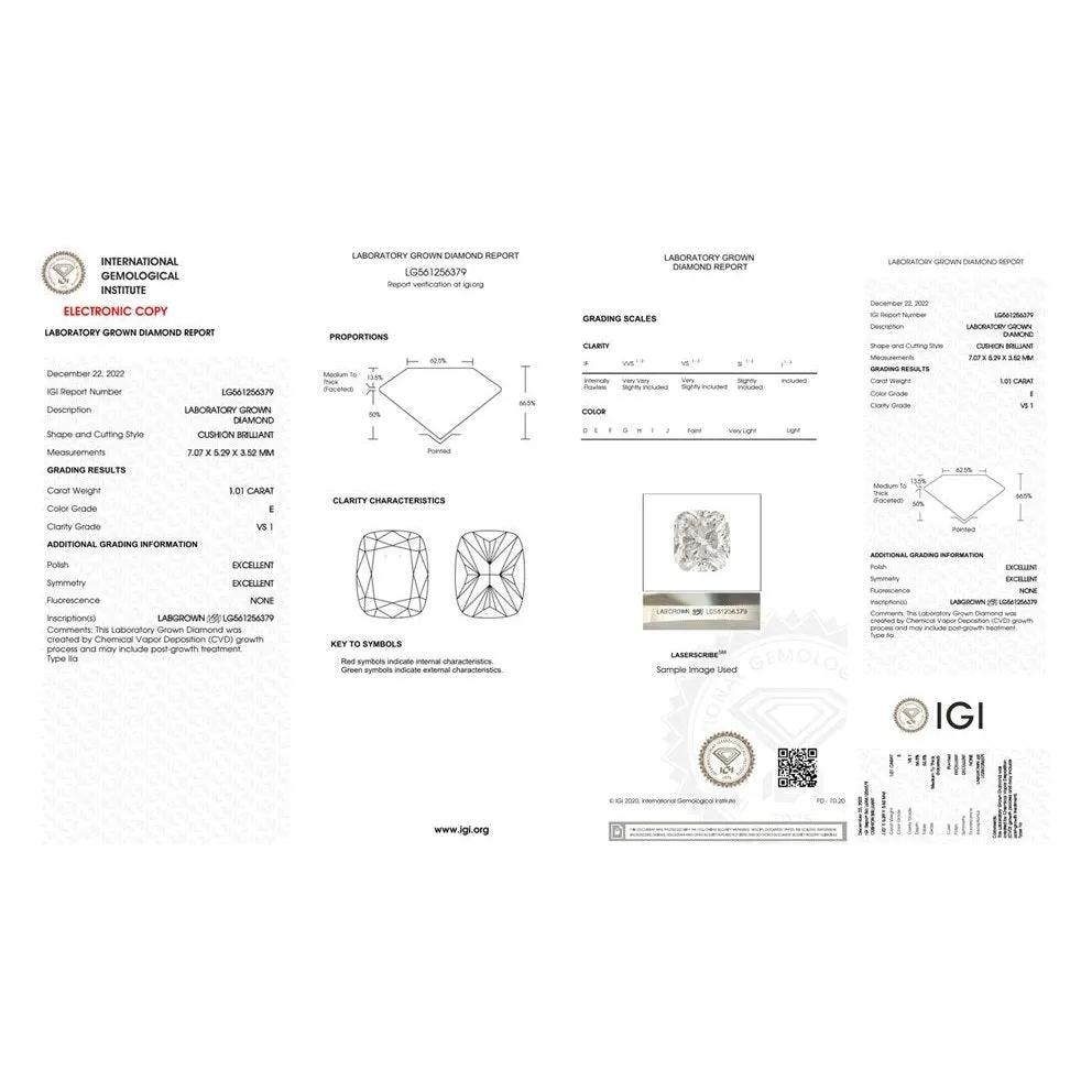 Cushion Shape 1.01 Carat Lab Created Diamond