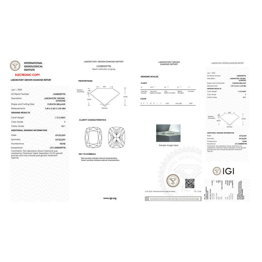 Cushion Shape 1.13 Carat Lab Created Diamond