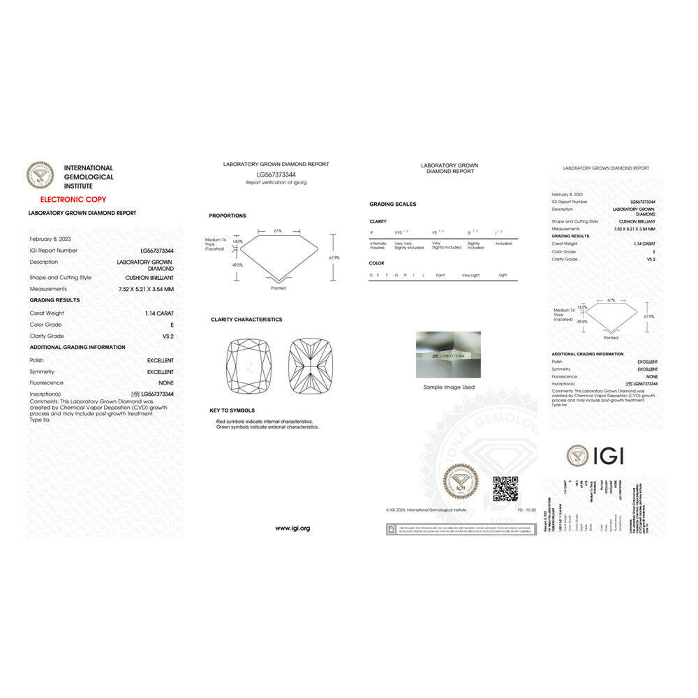 Cushion Shape 1.14 Carat Lab Created Diamond