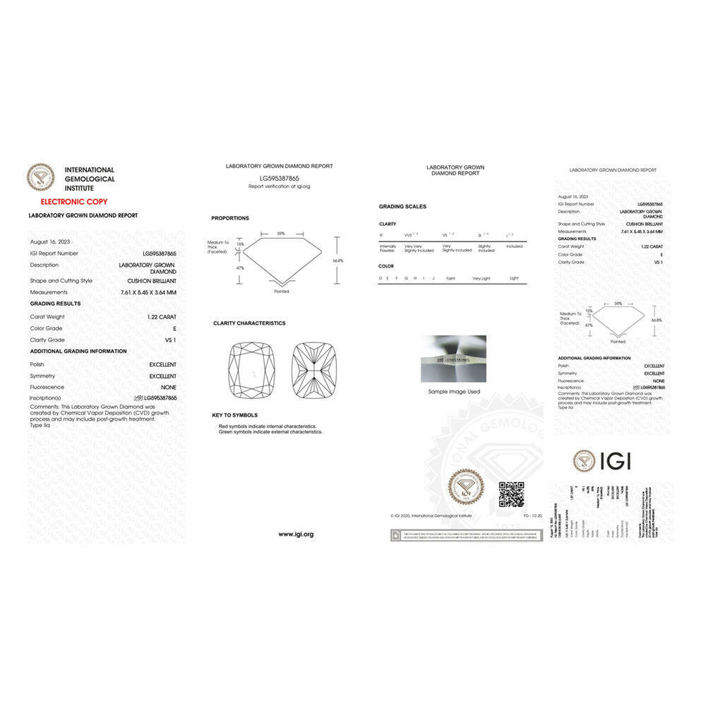 Cushion Shape 1.22 Carat Lab Created Diamond