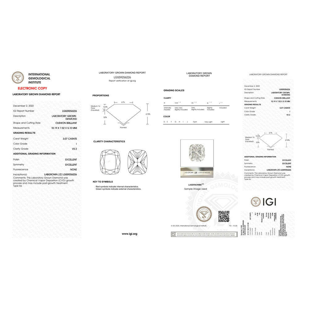 Cushion Shape 3.07 Carat Lab-grown Diamond