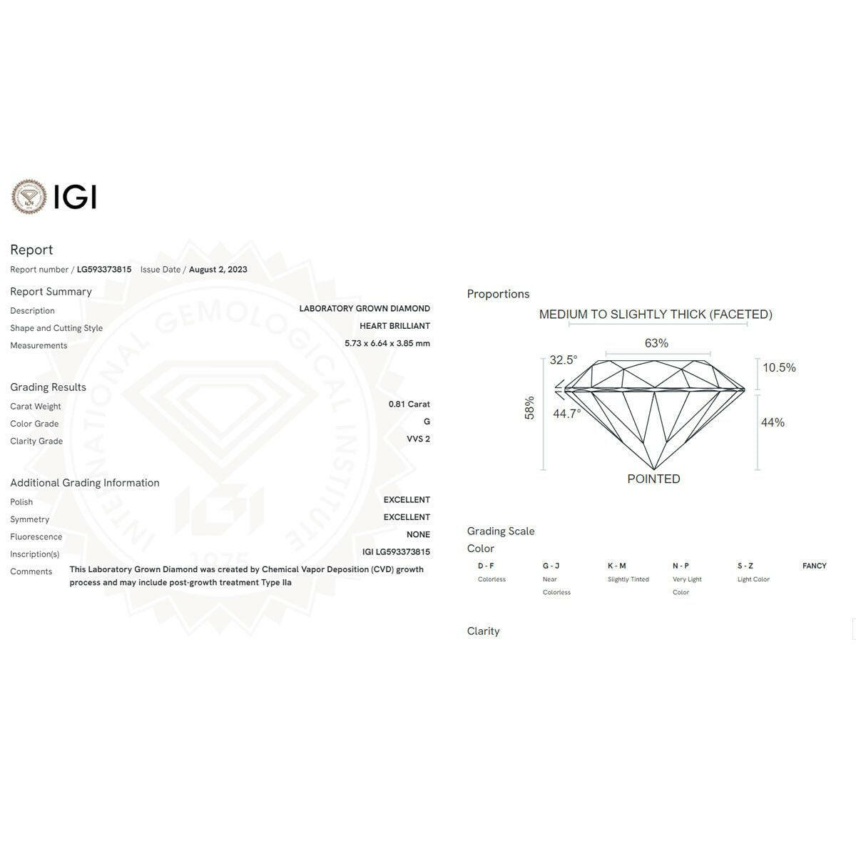 Exquisite 0.81 carat Heart Shape Lab Grown Diamond