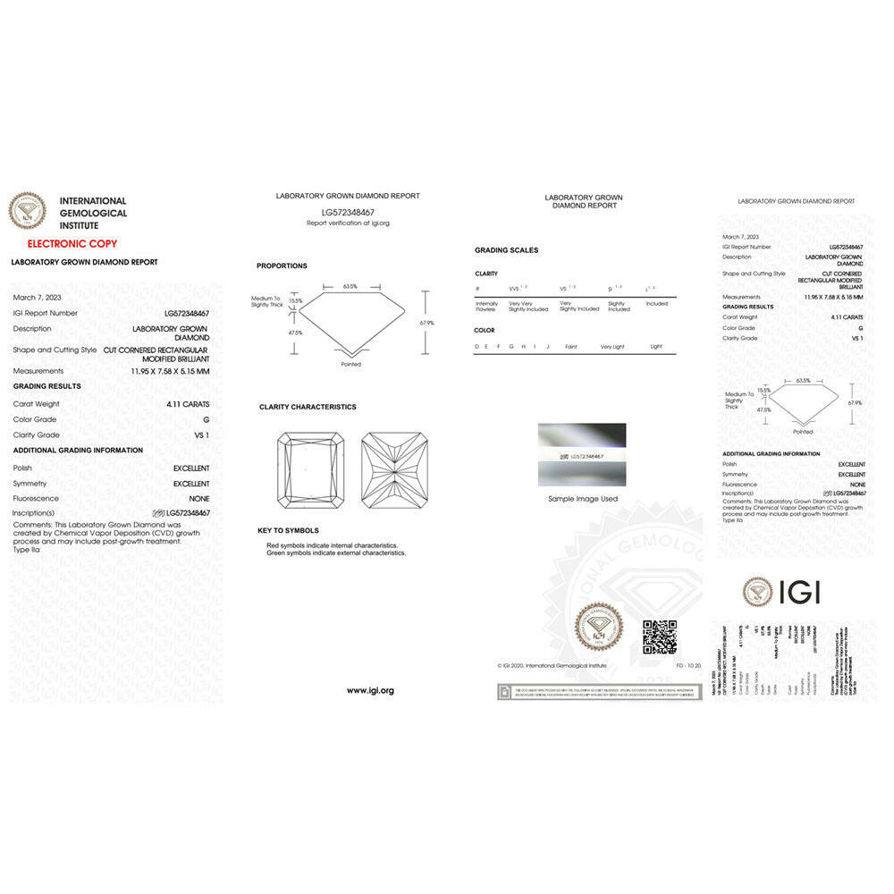 Lab Grown Diamonds in 4.11ct carat Radiant Cut