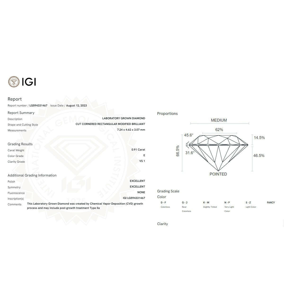 A 0.91 carat Radiant Cut Lab Grown Diamond
