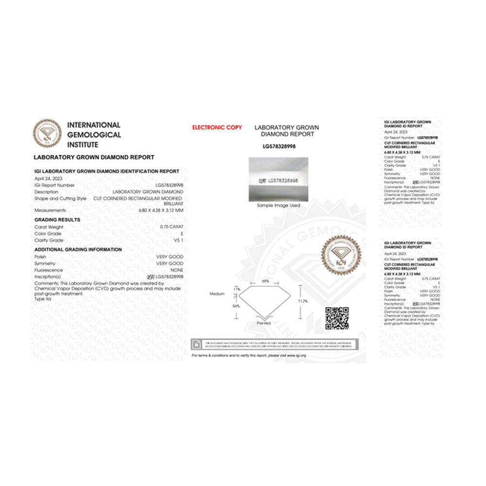 Radiant Shape 0.75 carat Lab Grown Diamond