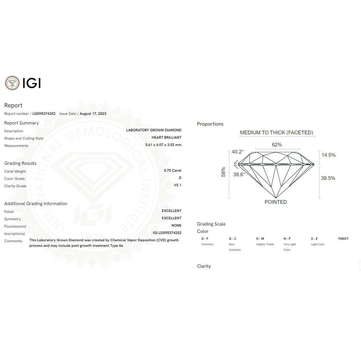 Luxurious 0.70 carat Heart Shape Lab Grown Diamond