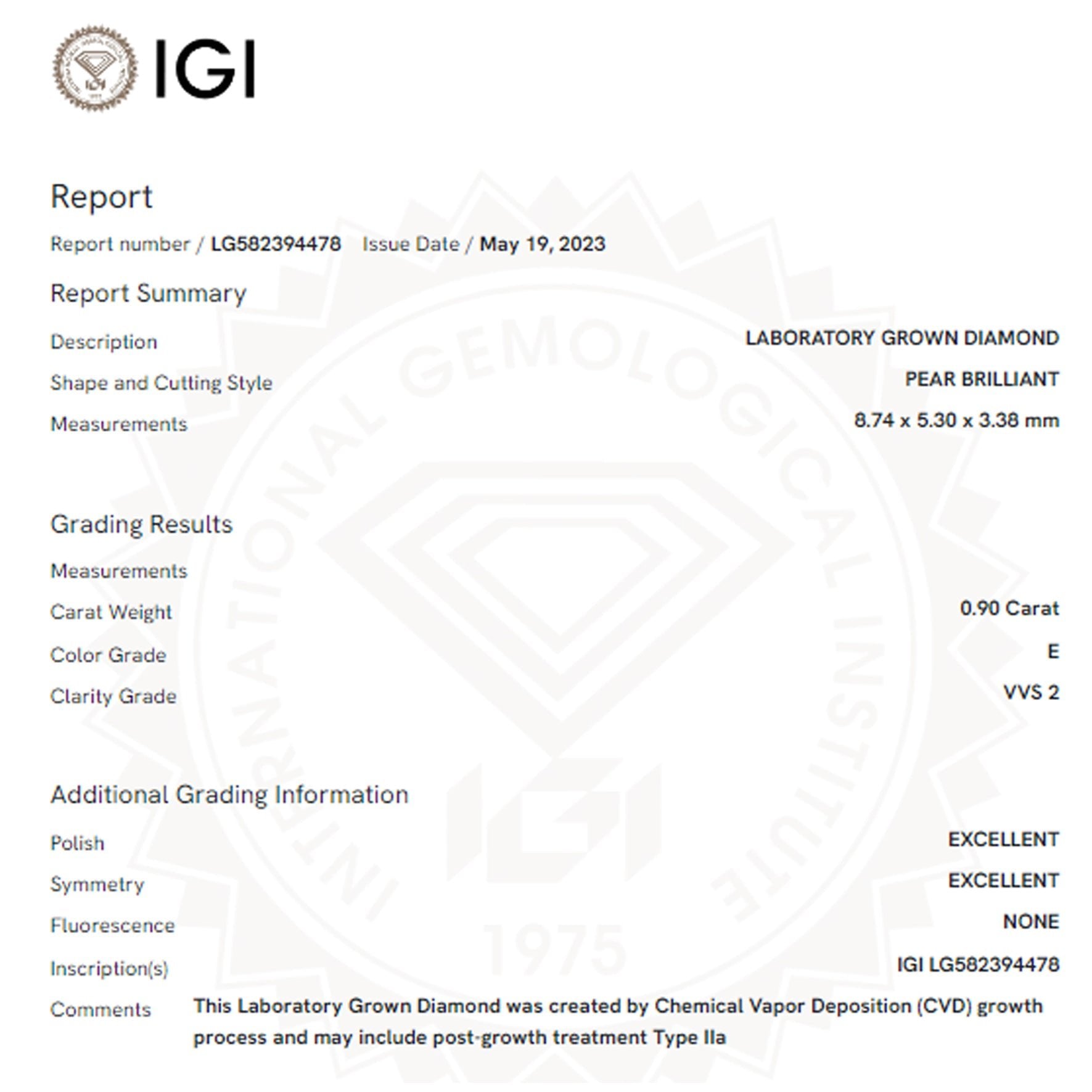 The Perfect 0.90 carat Pear Shape for Lab Grown Diamond