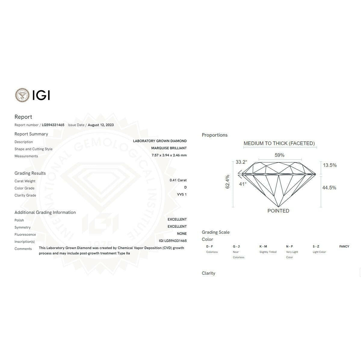 A Sustainable Choice 0.41ct Lab Grown Marquise Diamond