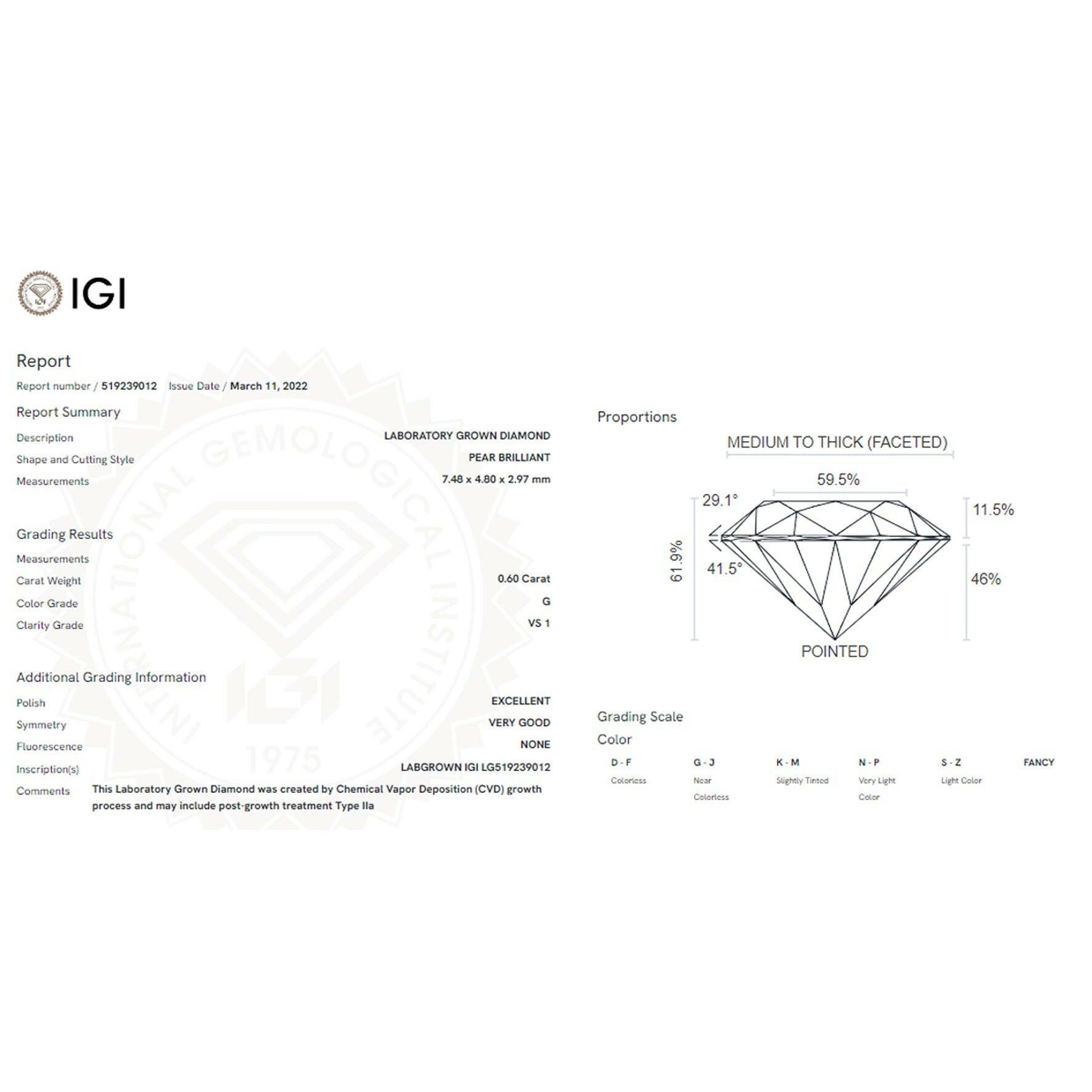 0.60 carat Lab Grown Diamonds in a Classic Pear Cut