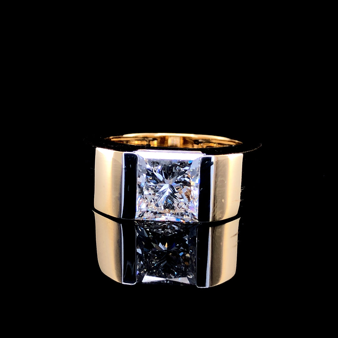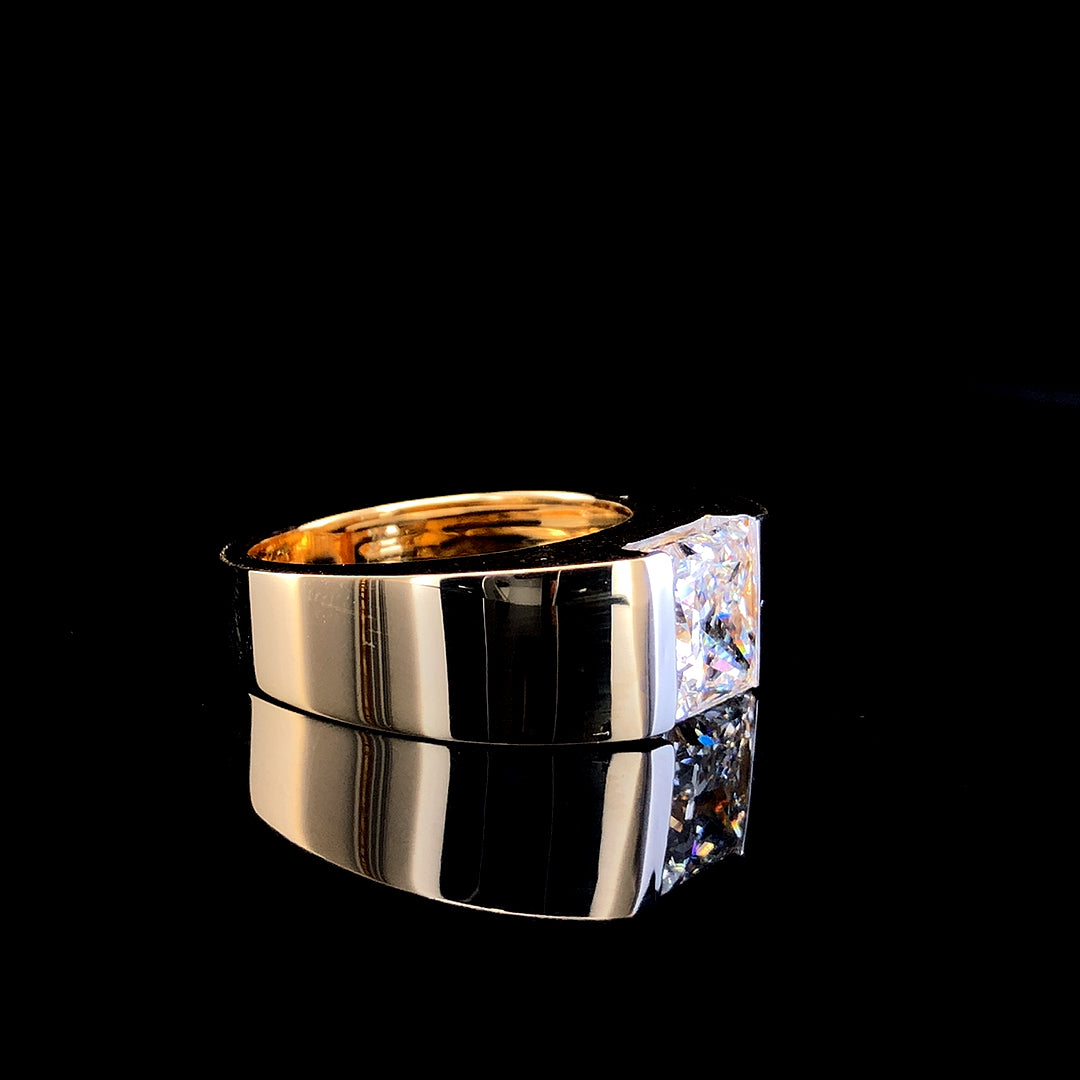 Exquisite 3.77ct Princess Cut Lab-Grown Diamond Round Ring In 18k Yellow Gold