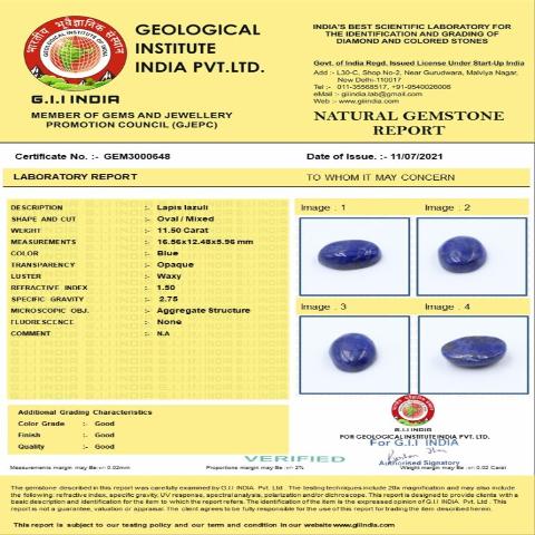 11.5 Carat 12.65 Ratti Natural GII Certified Africa Oval shape Blue Lapis lazuli Gemstone