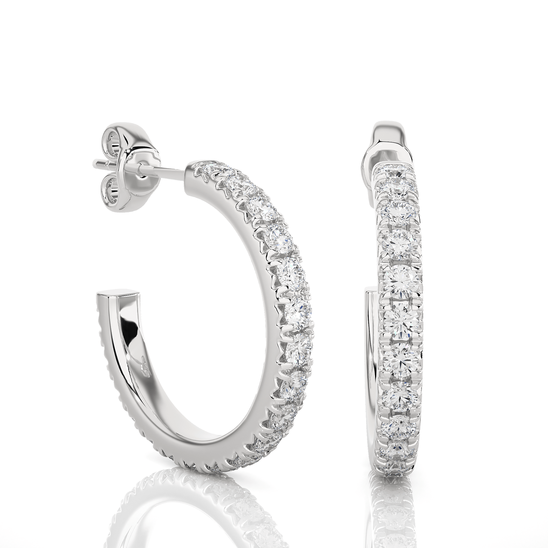 14K White Gold 0.70ct Natural Diamond Hoop Earrings