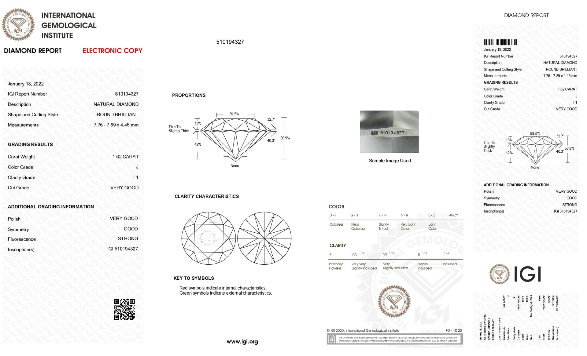 1.62ct Round Brilliant Cut I1 Clarity J Color Natural Diamond