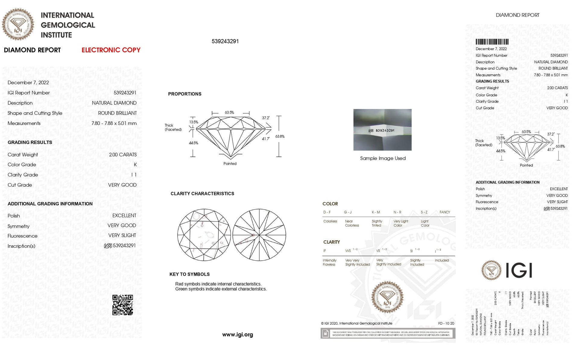 2ct Round Brilliant Cut I1 Clarity K Color Natural Diamond