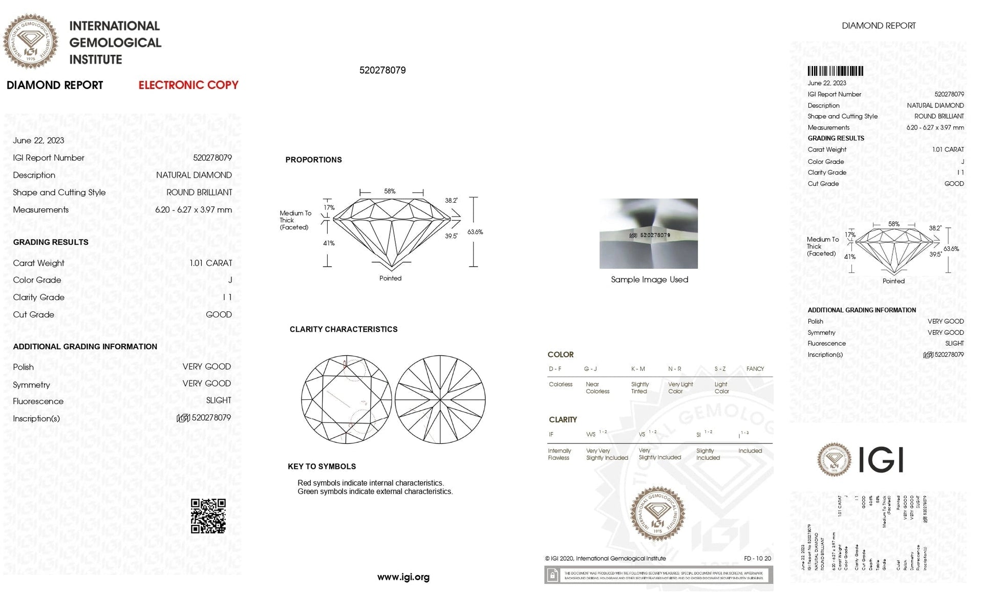 1.01ct Round Brilliant Cut I1 Clarity J Color Natural Diamond