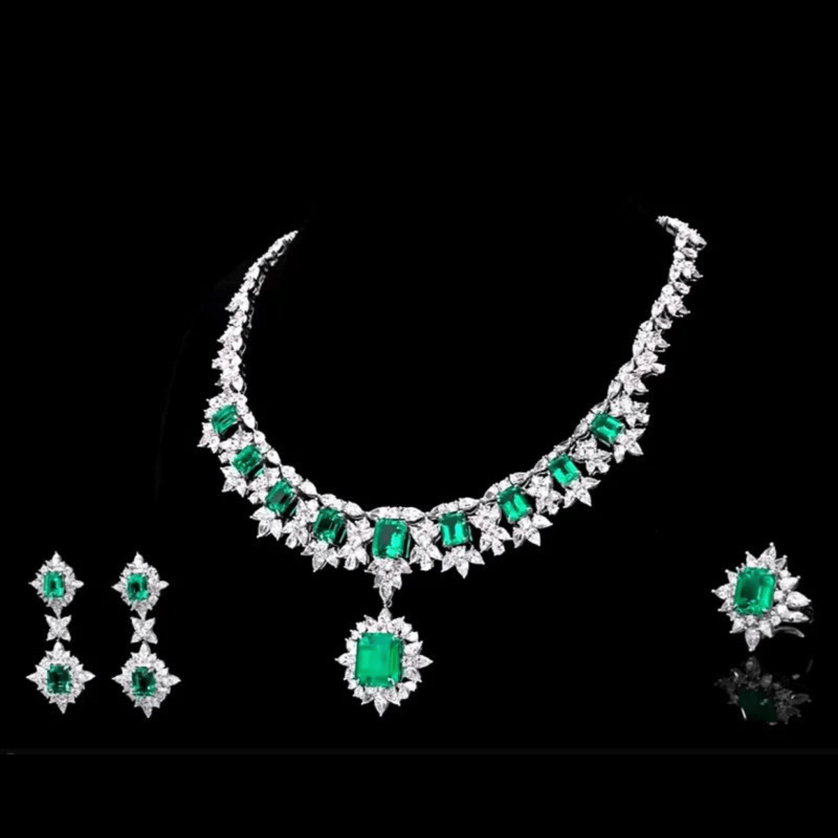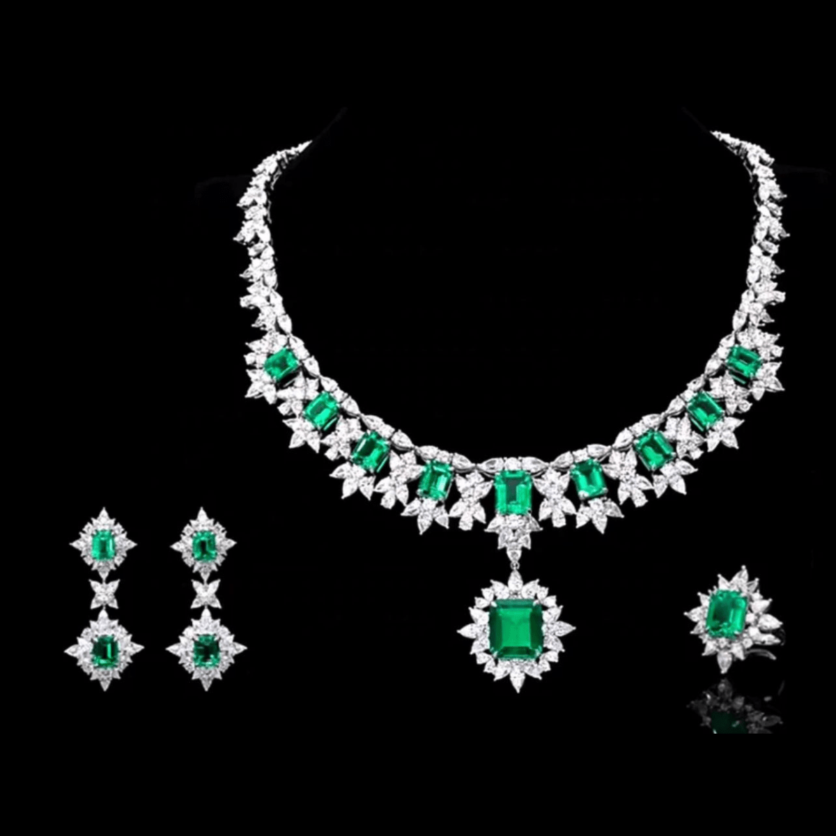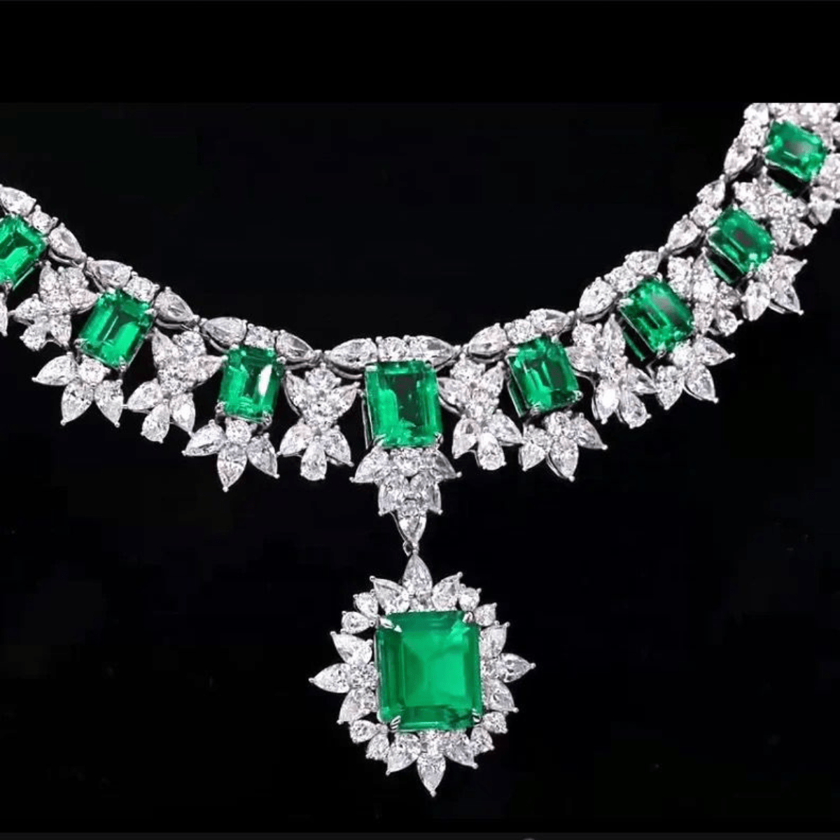 14 k gold studded bridle lab grown diamond and lab grown emerald beautiful necklace