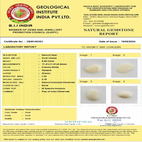 6.9 carat 7.59 ratti natural GII certified Australian Oval shape opal stone