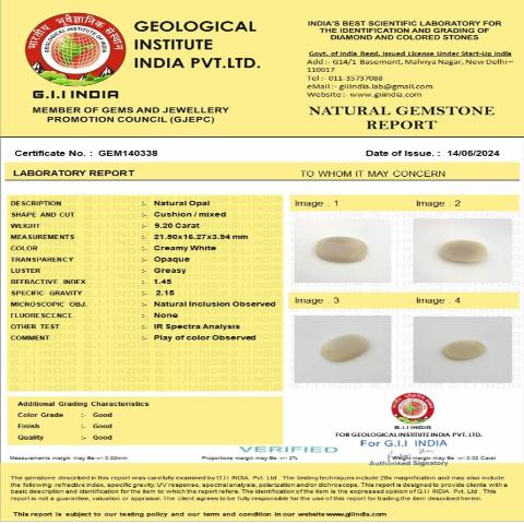 9.2 carat 10.25 ratti GII certified natural Australian Cushion shape opal stone