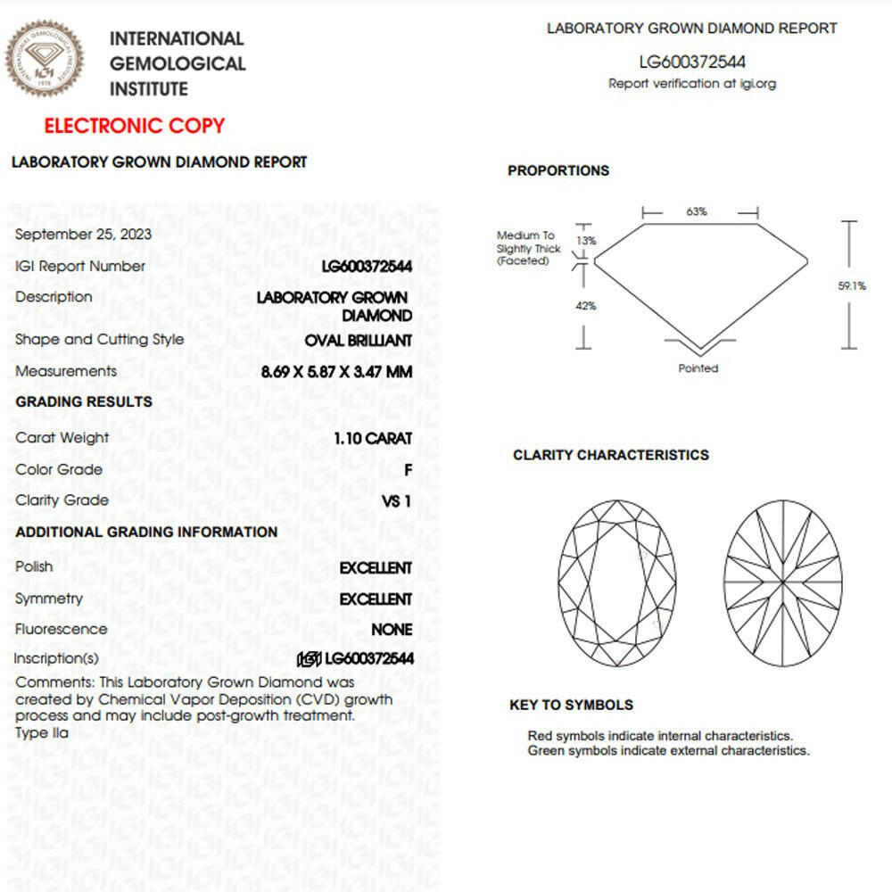 Oval cut 1.10 carat lab grown diamond
