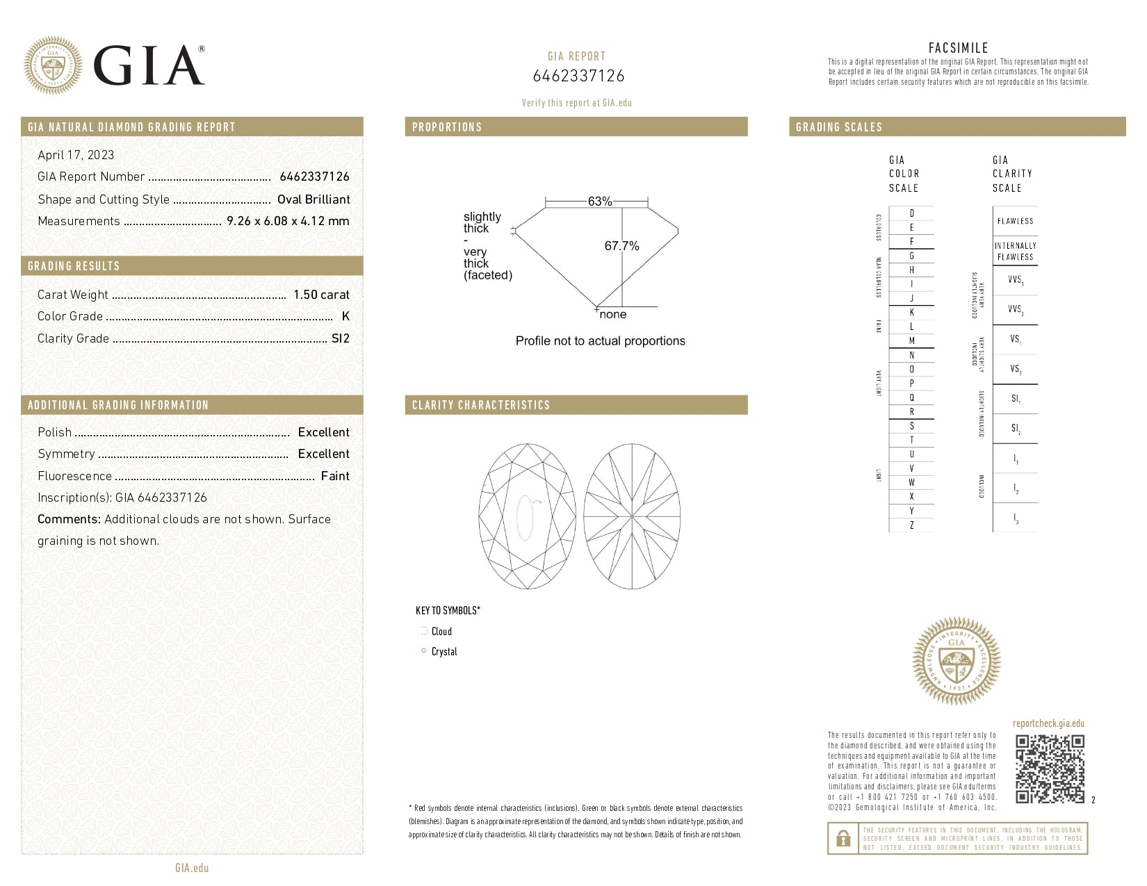 1.50ct Oval Brilliant Cut SI2 Clarity K Color Natural Diamond